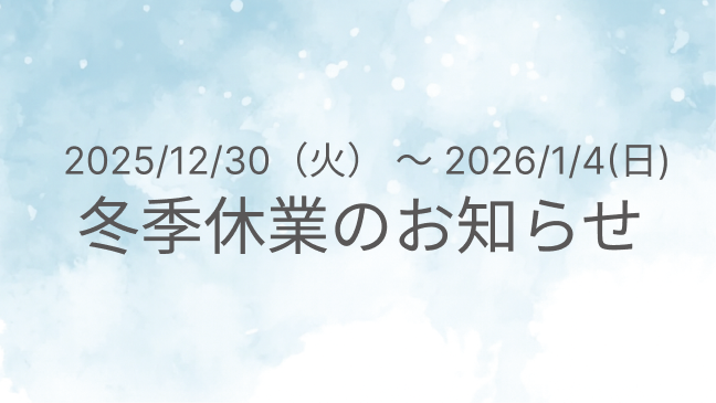 平素は格別のお引立てを賜り、厚く御礼申し上げます。誠に勝手ながら、以下の期間を年末年始休業とさせていただきます...続きを読む