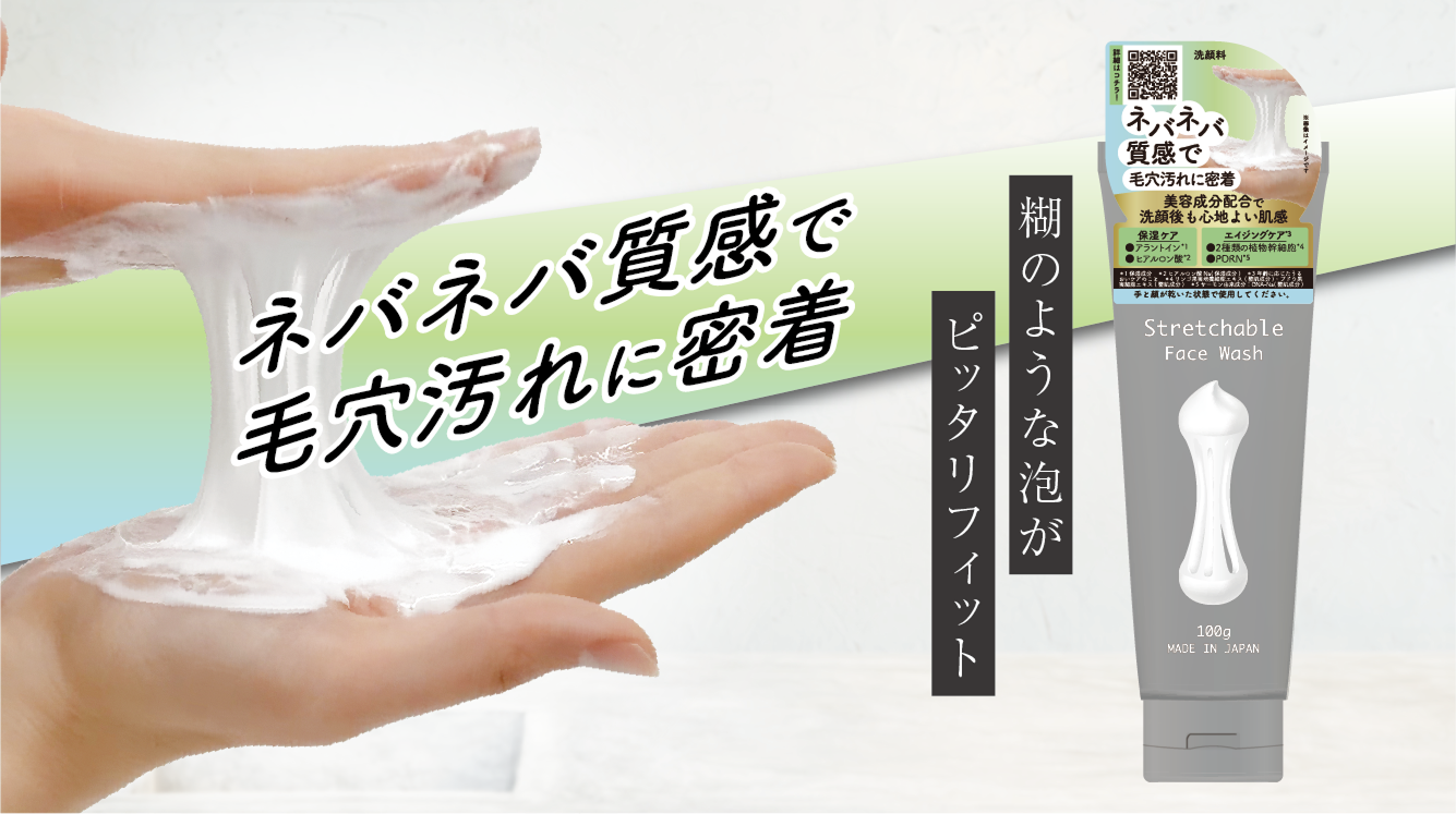 ざらつきが気になる肌にネバネバ泡が密着。潤い洗浄でつるんとクリアに。